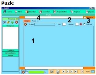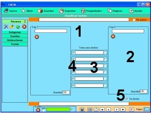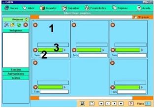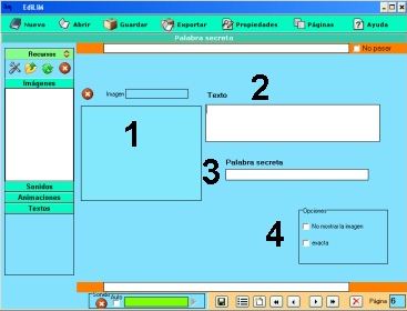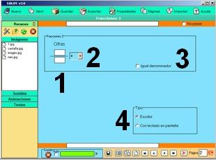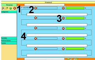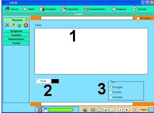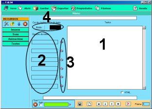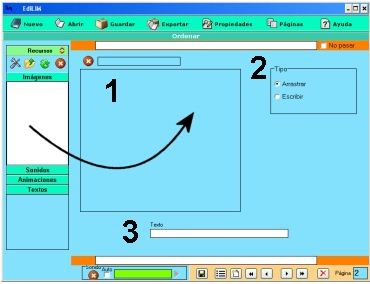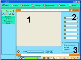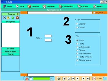 1.- Escribir texto. 2.- Arrastrar un elemento del almacén de recursos. 3.- Muestra información. No es editable. |